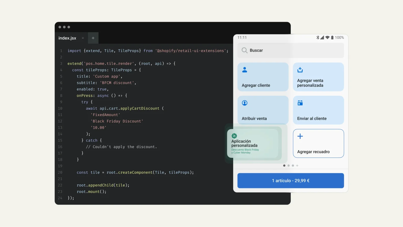 Olvídate de las soluciones genéricas y personaliza Shopify POS para que se adapte a tu negocio con opciones con y sin código.